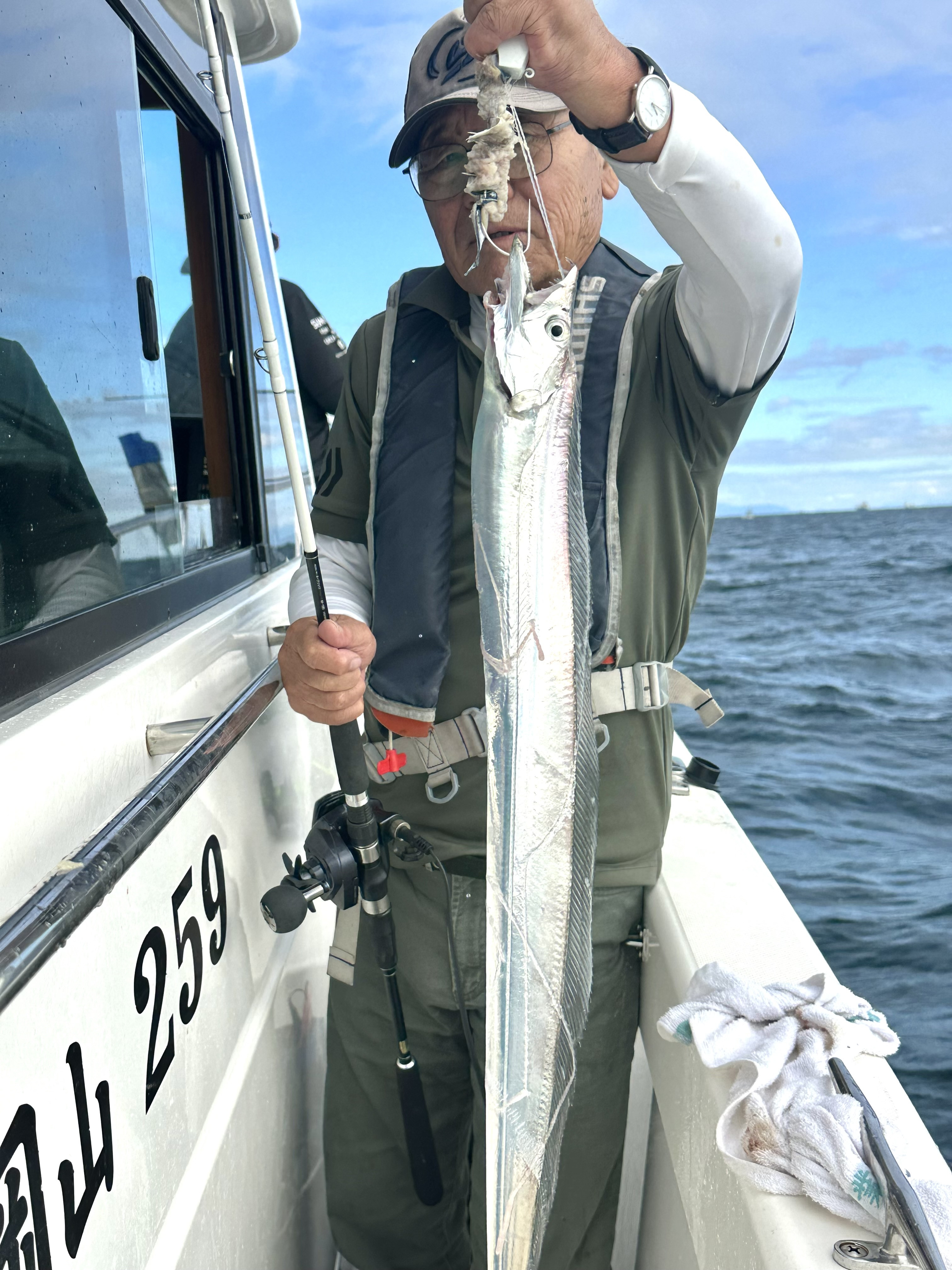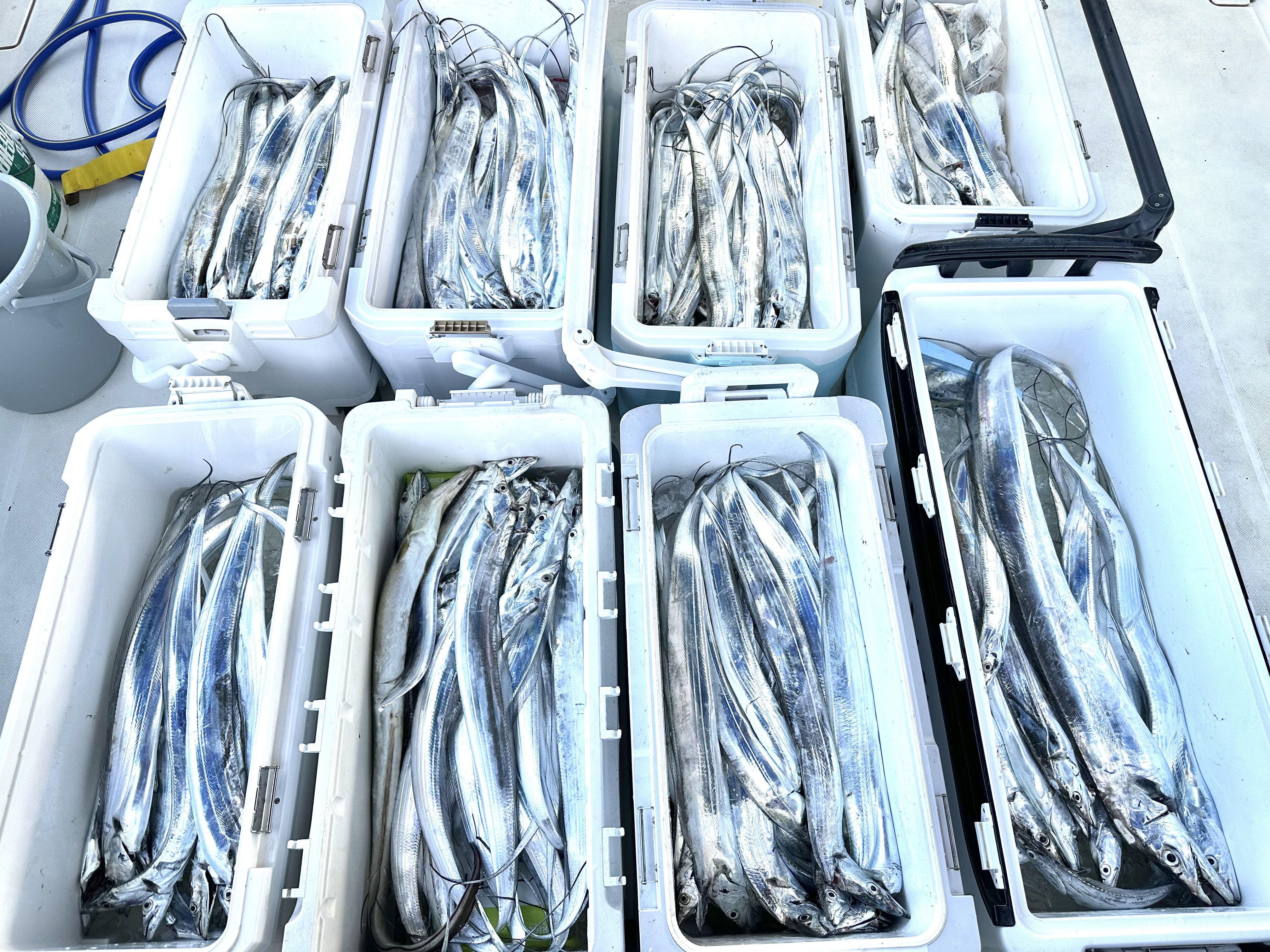 10月15日(水)遠征タチウオ便!トップ29本〜次席26匹〜朝から波風強い中頑張って頂きました!次回ベタ凪になるの祈っておきます!チャーターありがとうございました!