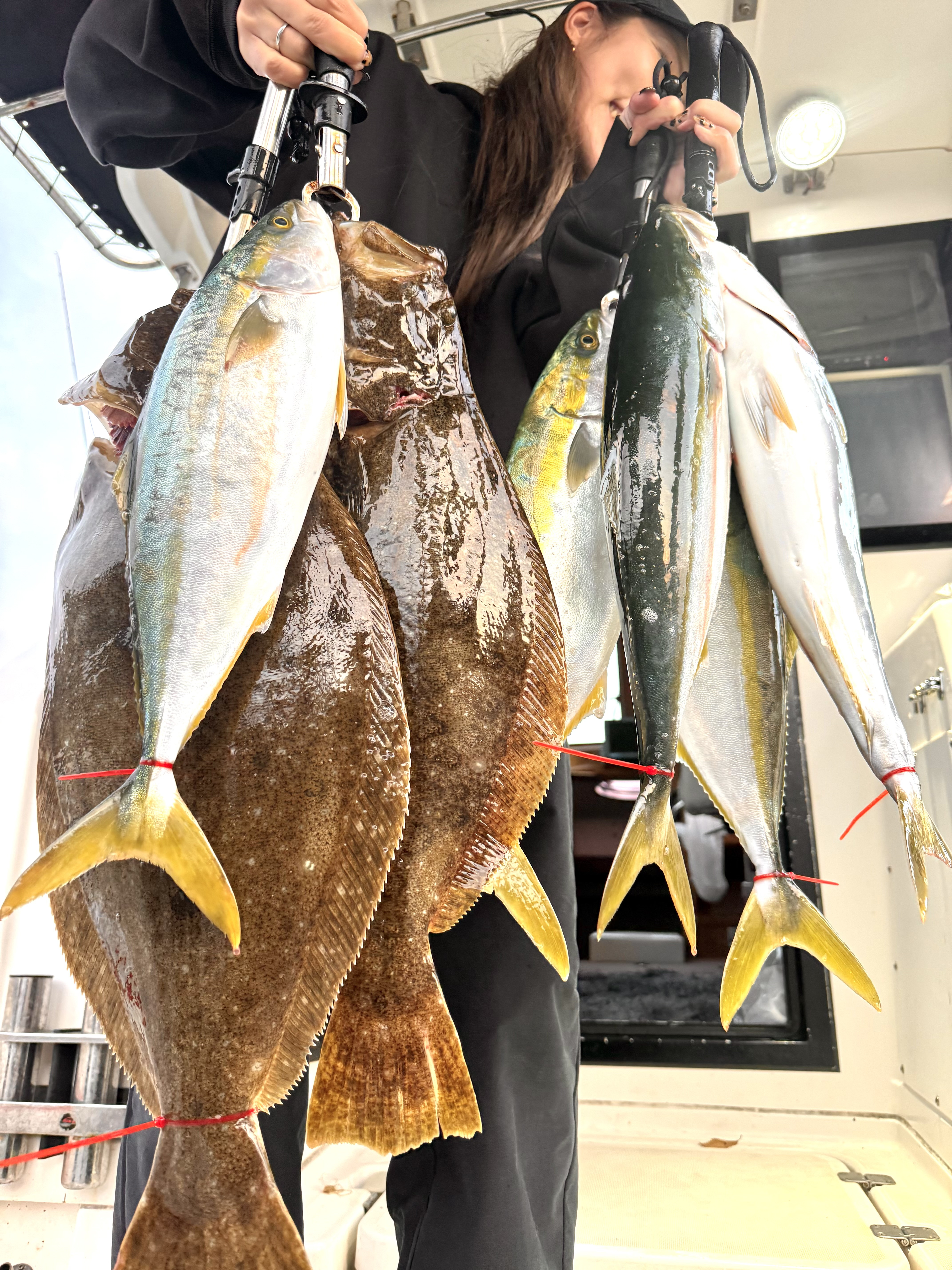 12月20日(土)青物ジギング便!トップ11本〜ヒラメ、サワラ、ハマチ、タイ1日頑張って頂きありがとうございました!明日以降3月末までは真鯛、メバルサビキにて出船します!
