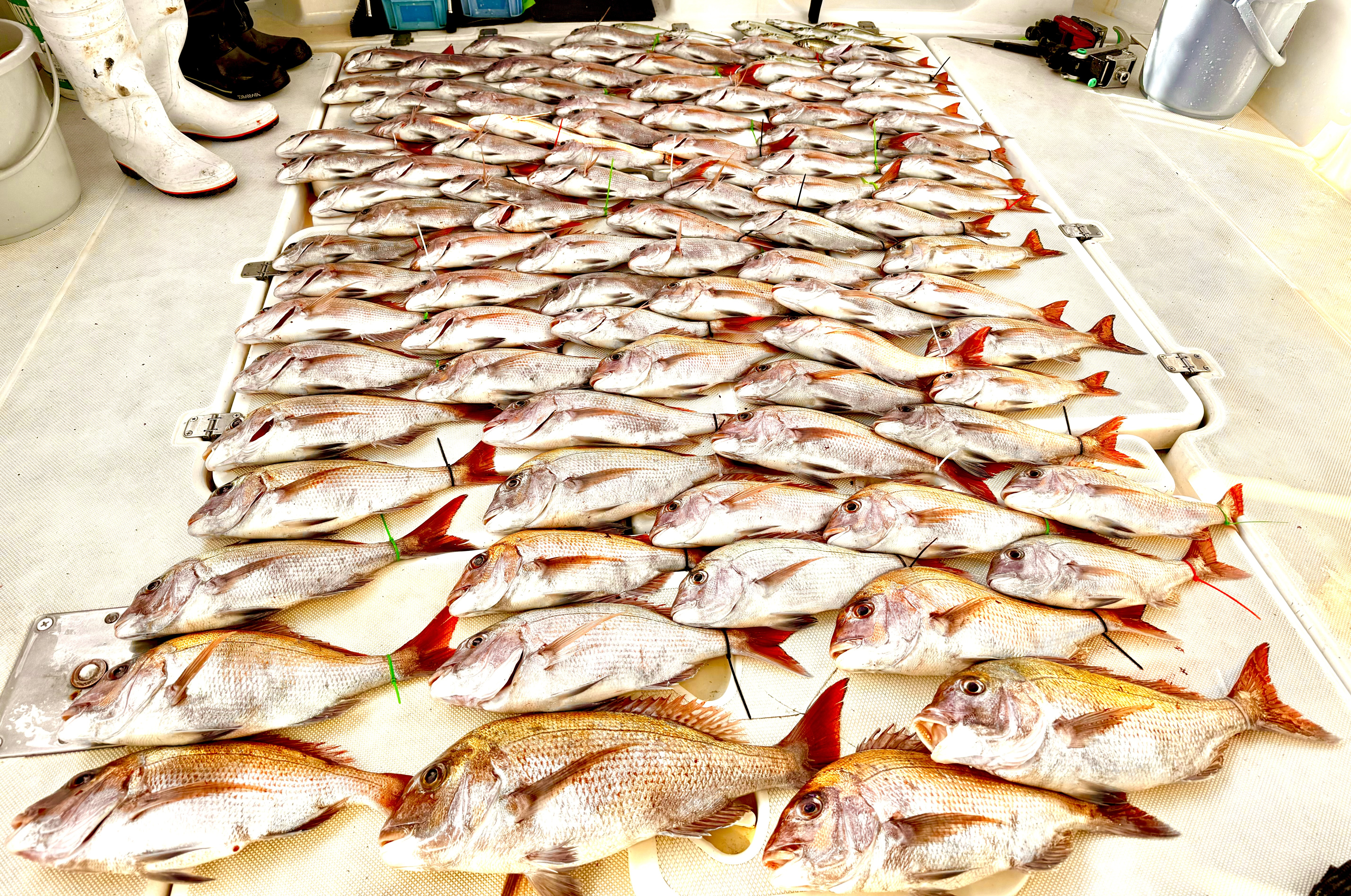 1月5日真鯛サビキ便🙆♂️船中94枚〜短時間勝負でしたがしっかり釣って頂きクーラー満で納竿です!ご乗船ありがとうございました!